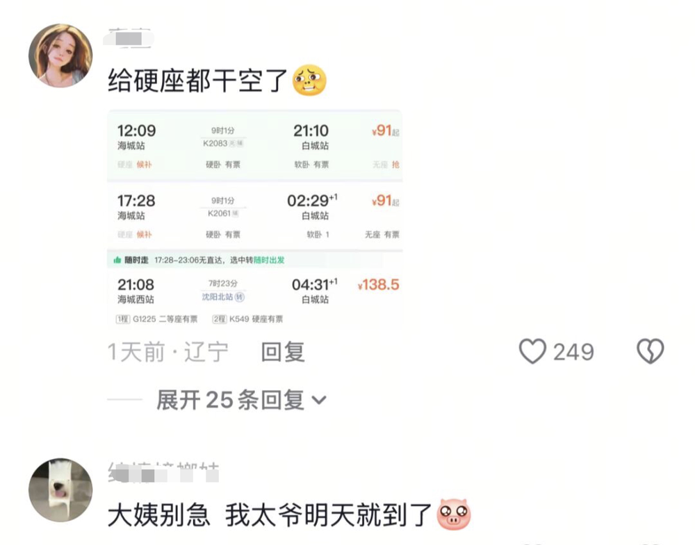 甚至有好事儿的网友去查了查,发现白城火车站对面的宾馆也开始坐地起价。