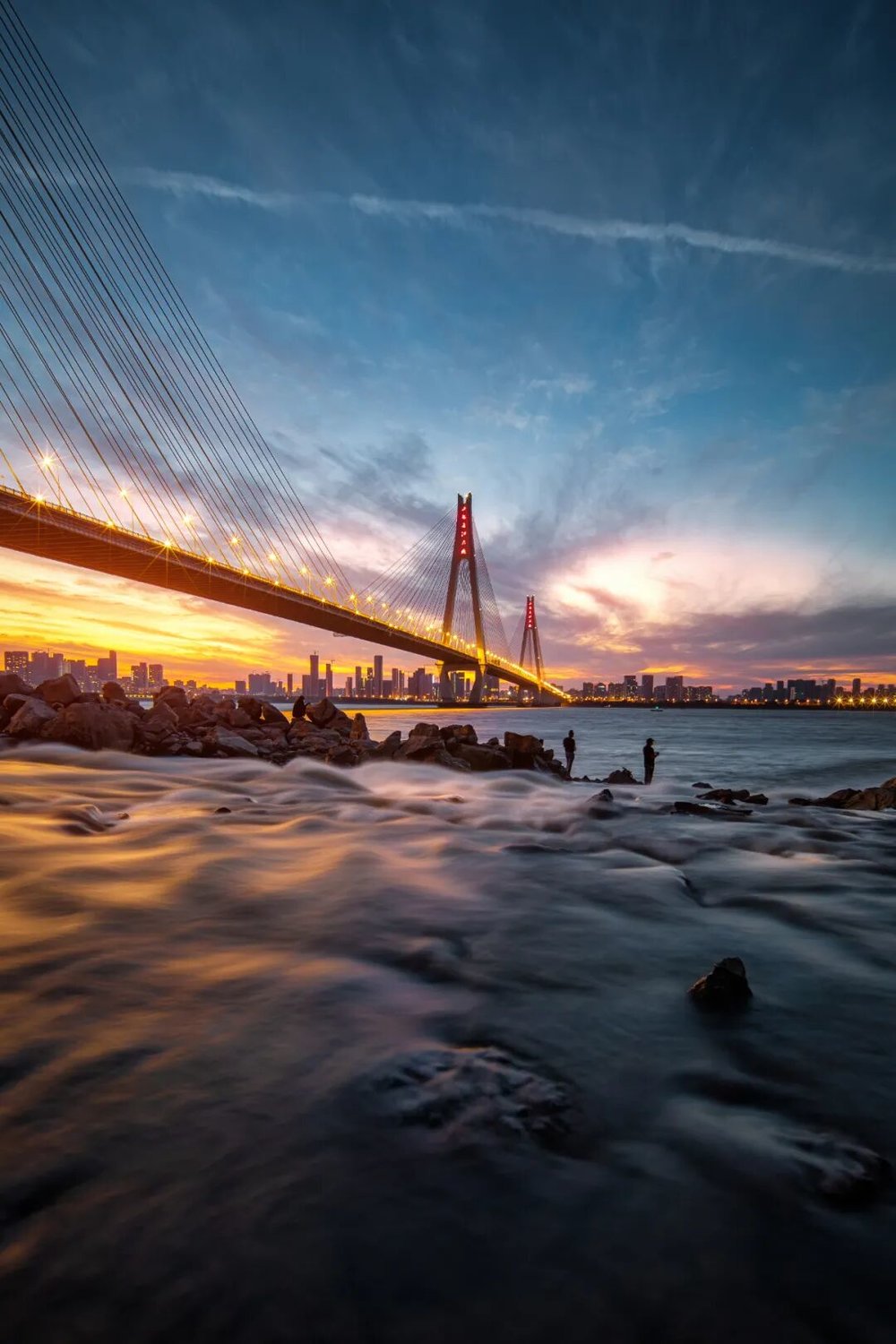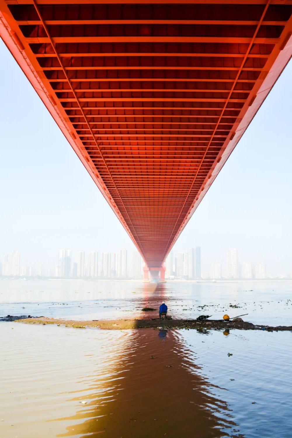 武汉鹦鹉洲大桥下的钓鱼者。摄影/温伟栋