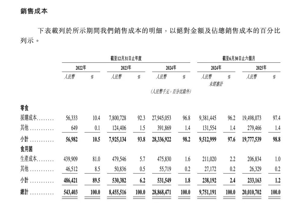 这也导致量贩零食行业的成本居高不下。招股书显示,万辰集团过去两年的零食采购成本占到公司整体销售成本的 97% 左右,毛利率维持在 10% 左右的低位;鸣鸣很忙去年商品销售收入虽然创下 392 亿元的新高,但销售成本同样高达 363 亿元,过去三年毛利率维持在 7.5% 左右。