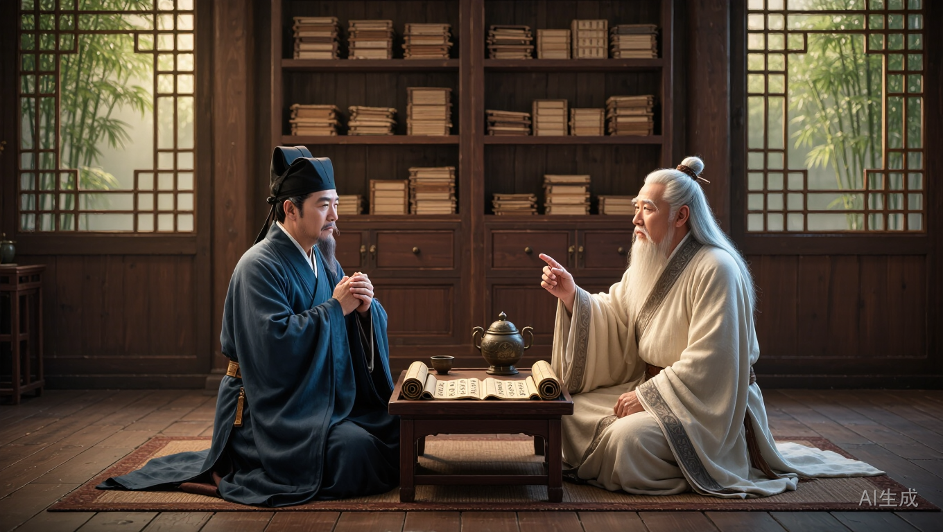 儒家主张“不怨天,不尤人,下学而上达。知我者其天乎”,讲克己复礼、忠孝节义、忠君孝悌,求君仁民顺、天下太平;道家主张“为学日益,为道日损”,讲无为而治、道法自然、虚极静笃,求自然而然、无为而为。