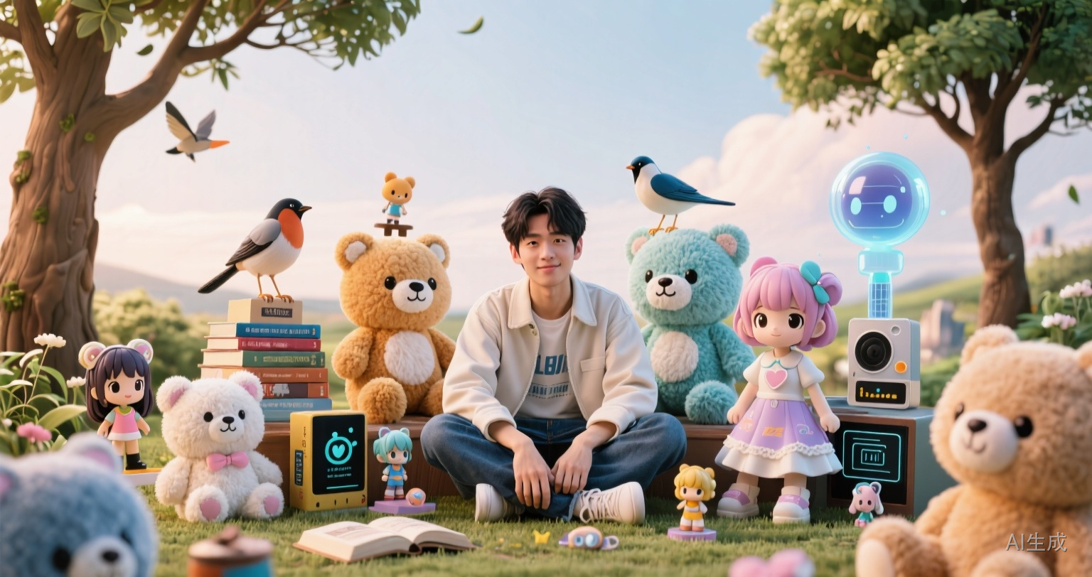 毛绒玩偶有着其他类型玩偶所不具备的温柔:不同于脆弱、易碎的硬质玩具,柔软蓬松的触感所带来的疗愈力,只要一碰便会沦陷。孩子们与毛绒玩偶在玩耍中建立友谊,从而学会照顾他人;成年人向巨型毛绒玩偶索取拥抱,享受被包裹的暖意。就像童年时那双摆弄玩具的手,穿越时空,给未来的自己一个拥抱。爱意是双向流转的循环,而毛绒玩具则是那个最好的载体。