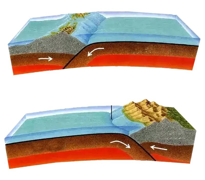 那反过来,生命对地球的演化的影响,我刚才可能提及过了,包括对大气的气候的变化,包括对板块和沉积过程的影响。比如说现在最新的一些理论认为,微生物可能跟地震发生都密切相关,我们知道像日本,或者是马里亚纳海沟,它们附近是俯冲带,是大洋板块跟陆地板块碰撞俯冲的地方,大洋的板块往下滑动的时候,就会发生地震。像日本、菲律宾这些地方,就会有非常多的地震。