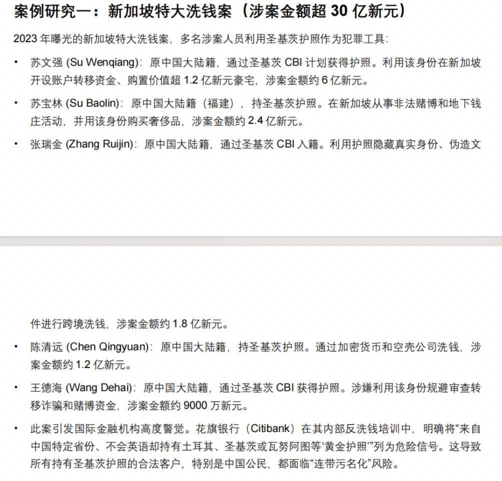 更重要的是,圣基茨和尼维斯甚至连所谓的“移民监”也不存在,其本质上就是赤裸裸地出卖国籍。并且圣基茨和尼维斯在金融系统上也非常混乱,为洗钱大开方便之门。2014年5月,美国财政部金融犯罪执法局(FinCEN)发布了一份针对圣基茨和尼维斯的警告。指责圣基茨的法律和监管体系为洗钱提供了机会,并使罪犯能够有效逃避调查和惩罚。