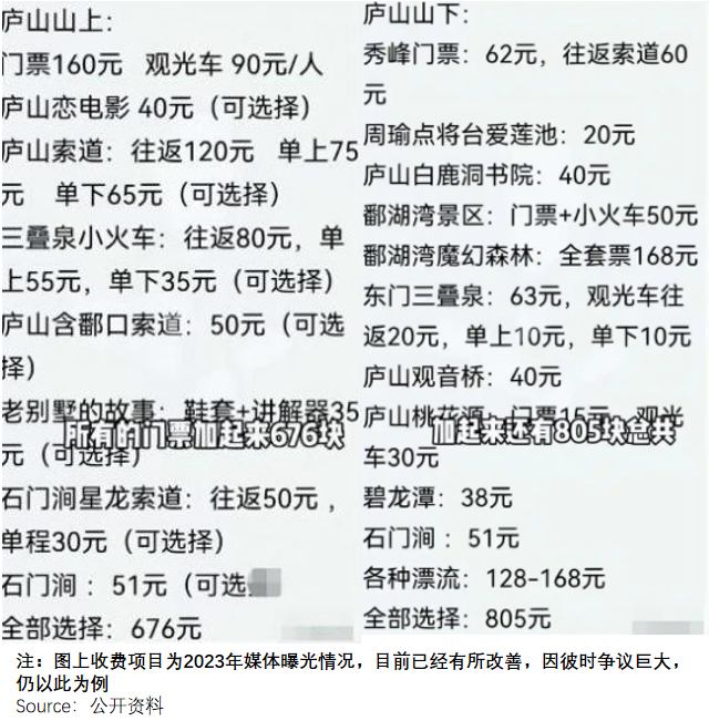而这样的情况,在从事文旅策划工作的黄小白看来,也还算是好的。庐山“套娃”收费闹出来的时候,有同行算了一笔账显示:把庐山所有景点都转完,需要花费近1500元。