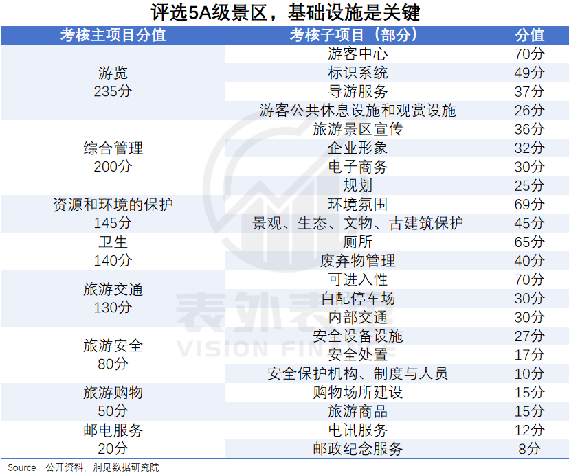 “一些小众景区的资源一点也不小众,他们完全是被5A景区的评选标准给耽误了。”黄小白说,评上5A靠的不是风景多惊艳,也不是游客多喜欢,真正起决定作用的是“服务质量与环境质量”——满分1000分,必须拿到950才能通关。