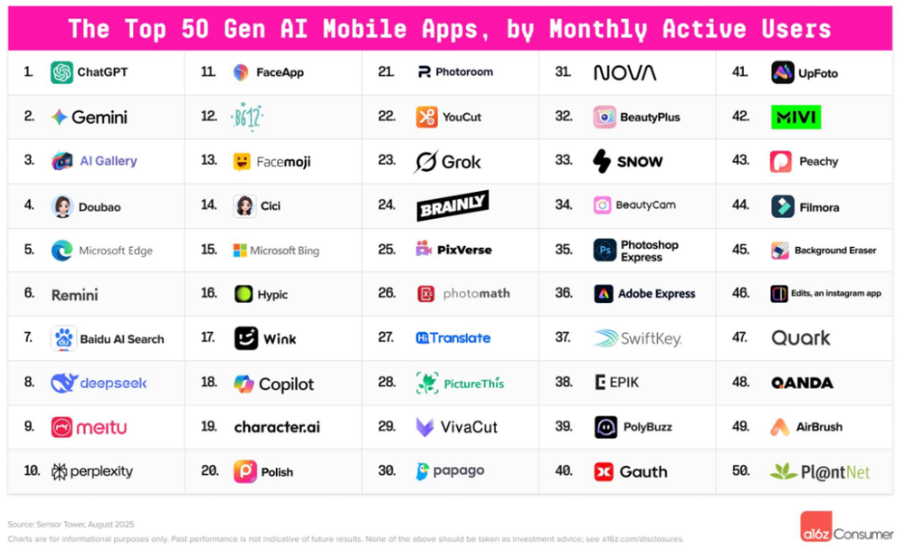 AI移动应用时代:50款上榜AI