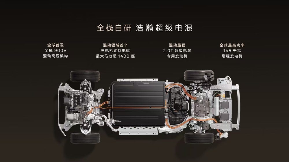 基于全球第一个全栈900伏的高压混动架构,极氪9X首次搭载了70度的超快充大电池,最大功率1030千瓦的三电机兆瓦电驱,2.0T超级电混专用发动机。极氪9X不仅将纯电、增程和混动的优势融于一车,在性能上真正向进口的燃油标杆看齐。