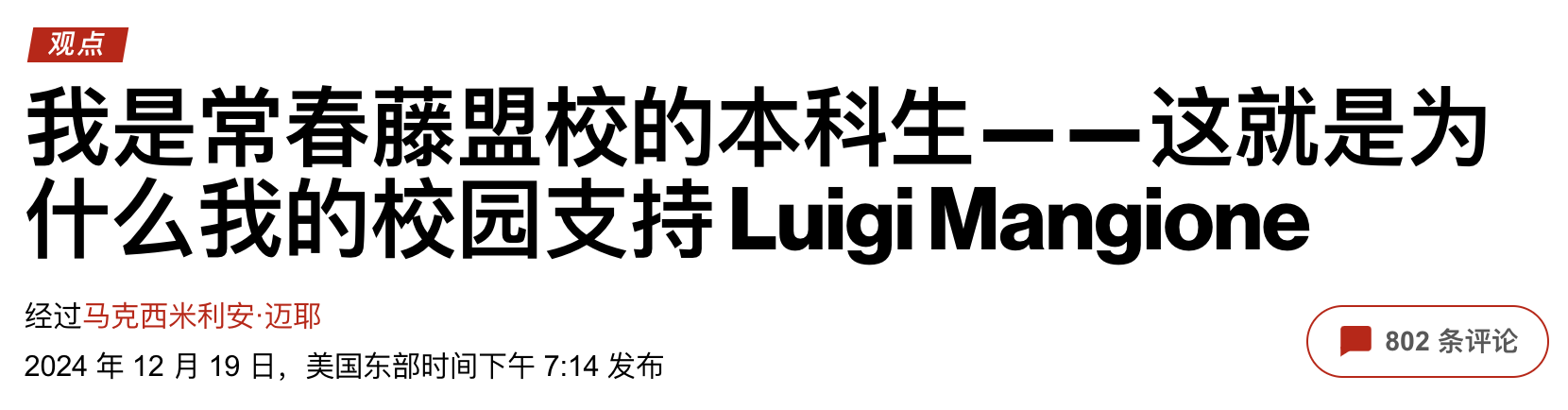 枪击特朗普的克鲁克斯、枪杀查理·柯克的泰勒·罗宾逊都是典型美国中产阶级家庭的孩子。如果这两个例子不具备足够的说服力,那么弥漫在街道上、校园中、网络里赞颂路易吉的声音,就是最能表现这种氛围的力量。