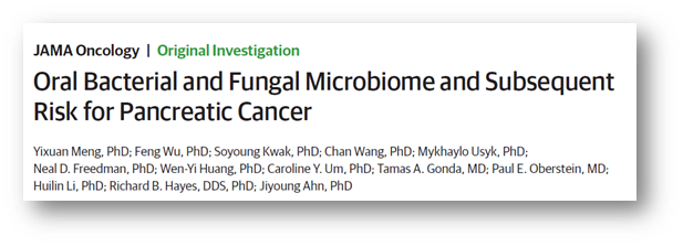 参考文献:Oral Bacterial and Fungal Microbiome and Subsequent Risk for Pancreatic Cancer. JAMA Oncol. 2025 Sep 18:e253377.