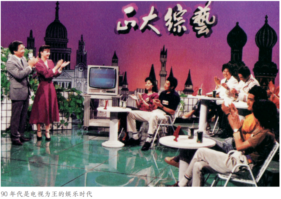 90年代是电视为王的娱乐时代,电影在80年代中期已式微,90年代更是被电视剧和综艺节目完全压倒,电视成为商业化时代的经典媒介和生产消费的中心,这种局面一直维持到新世纪之初。伴随着90年代激进的市场化进程,大众文化充分市场化,加速产业化。新富阶层或所谓“中产阶级”(“成功人士”)迅速崛起,他们利用市场资源,改造80年代大众文化,不但完成了文化的娱乐化消费主义升级(“娱乐至死”和粉丝经济),而且建立并巩固了中产阶级的文化趣味和意识形态(成功神话、赢者通吃),从而利用“文化工业”,维系了市场社会的生产和再生产。真正的大众,反而丧失了文化表达的主体地位。虽然文化工业的生产与消费必须在表面上迎合大众的欲望才能实现,但那往往只是塑造大众的虚假需求而已。大众(mass)只不过充当了被动的接受方,资本循环的末端罢了。