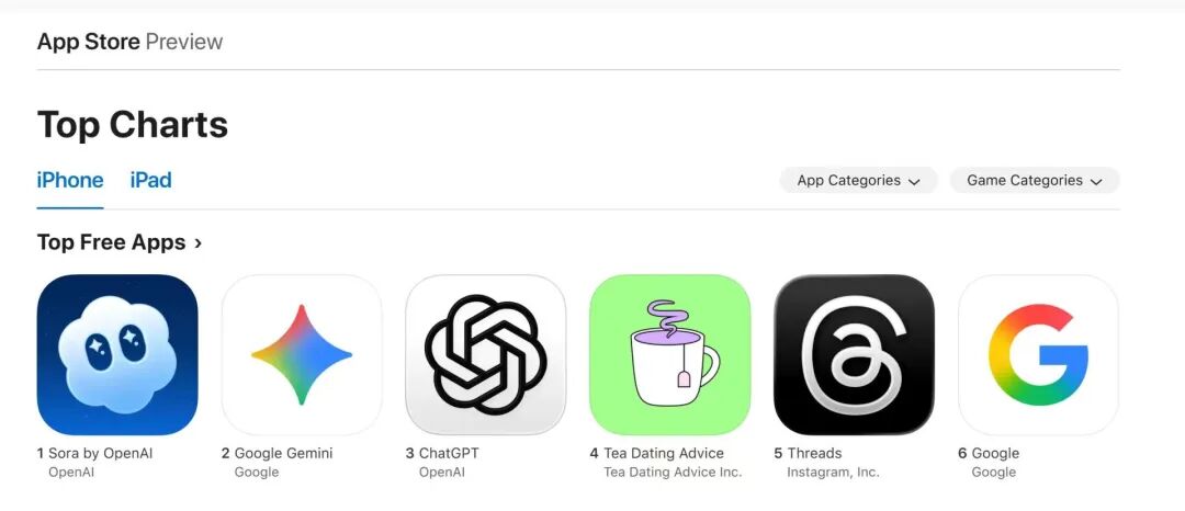 Sora App登顶全美免费榜:从视频生成到“社交数据”的围猎