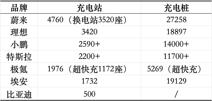 目前在中国市场,建设补能基础设施已经达成一定规模的汽车公司,包括蔚来、理想、小鹏、特斯拉、极氪和埃安。