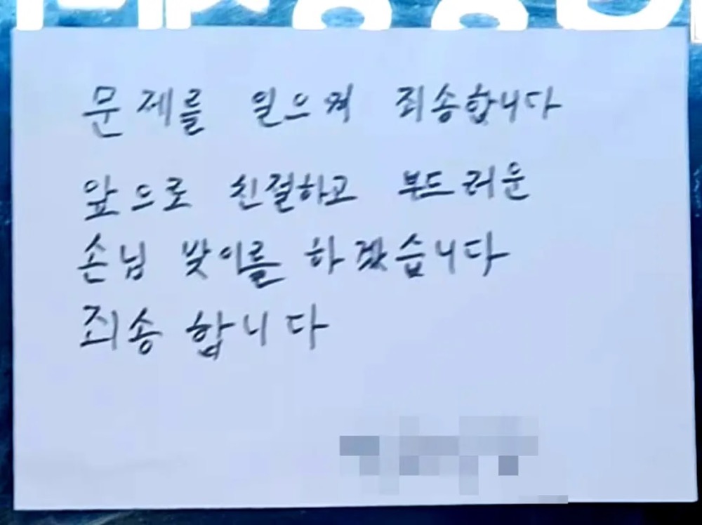 没抵挡住正义网友围攻的店家终于道了歉,还在店铺门口贴上了手写道歉信:“对于给您带来的困扰,我们深感抱歉。我们将继续以友善和热情的态度对待我们的客人。我们深感抱歉。”