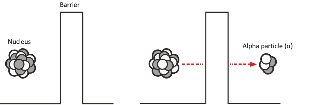 物理学家早在近一个世纪前就已经知道,隧穿效应在某种特定类型的核衰变——α 衰变(alpha decay)中是必不可少的。在这种衰变过程中,原子核中的一小部分物质会突破势垒,从核内“逃逸”出来,并出现在核的外部。