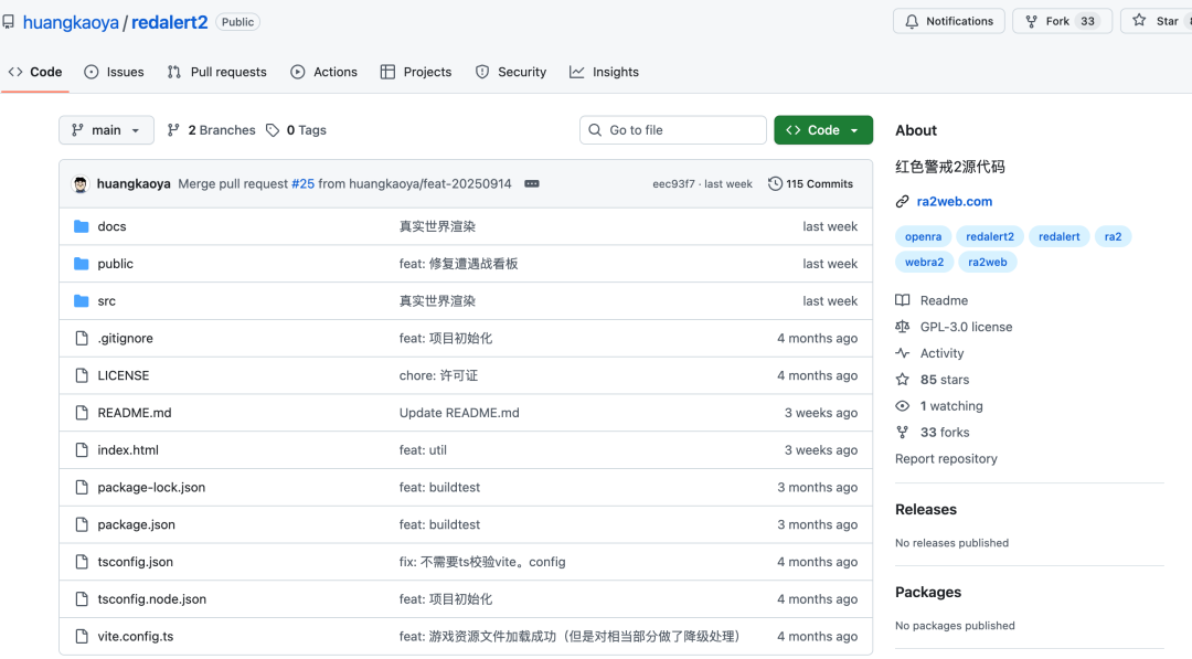 目前 GitHub 上有个叫 redalert2 的仓库,里面反编译了 Chrono Divide 的代码并开源,大家有兴趣的或者也想重制一个网页红警,可以逛一逛。