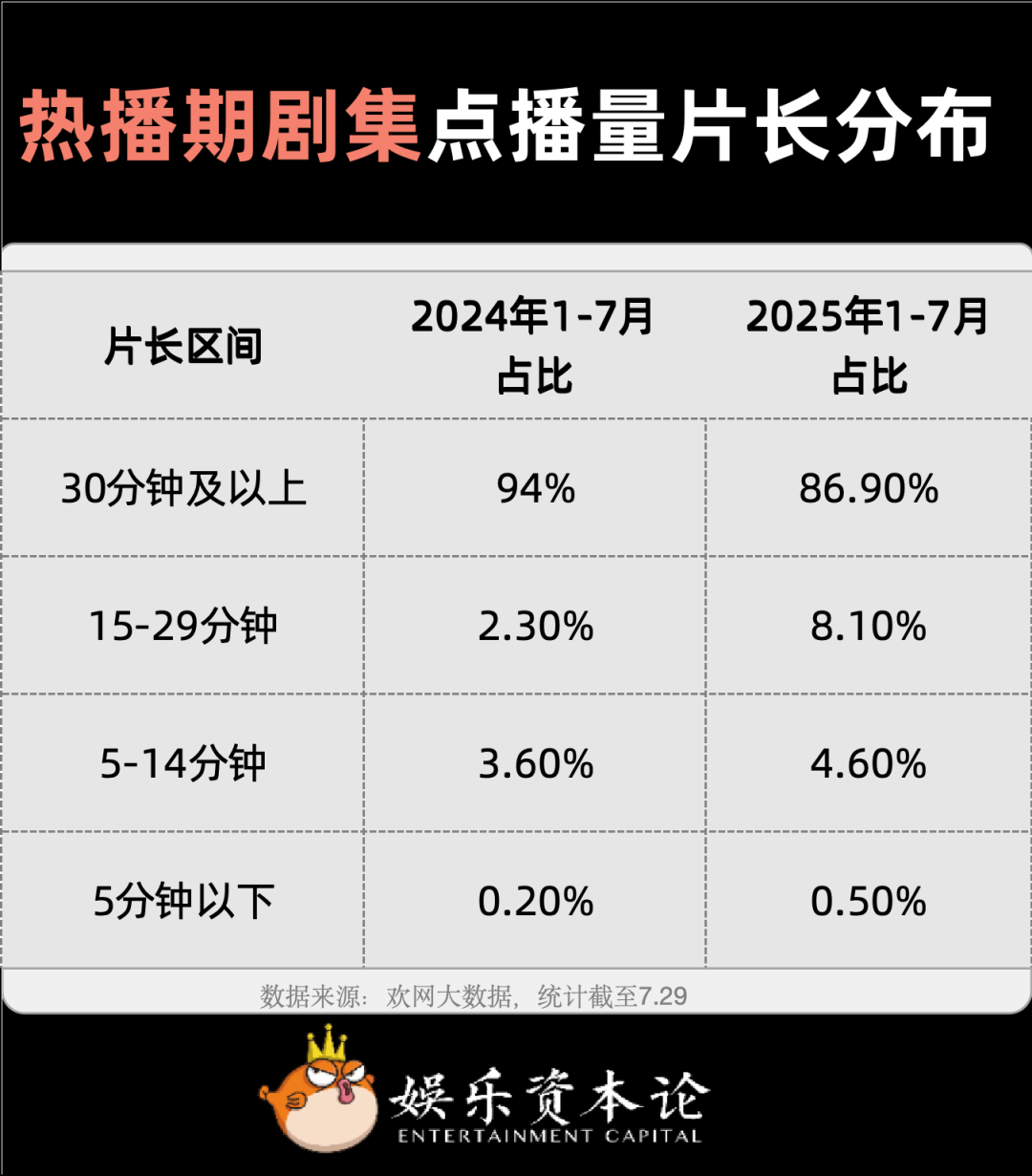 欢网大数据的热播剧集点播时长中,涨幅较大的是15到29分钟的中视频,横屏中剧(单集时长10到20分钟)的内容,或可在大屏发力。