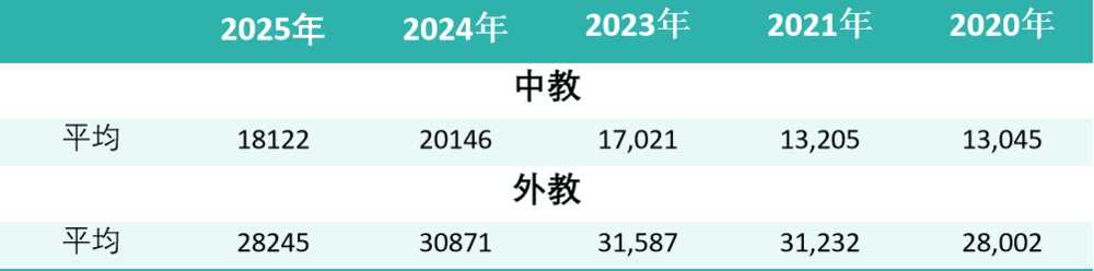 总体而言,中教平均薪资较2024年下降10%,外教降幅8%,外教薪资已回落至2020年水平。这种调整并非市场萎缩,而是供需结构优化的必然结果——当学校从“填空缺”转向“战略布局”,当教师从“被动求职”转向“主动选择”,薪酬体系必然需要重新校准。