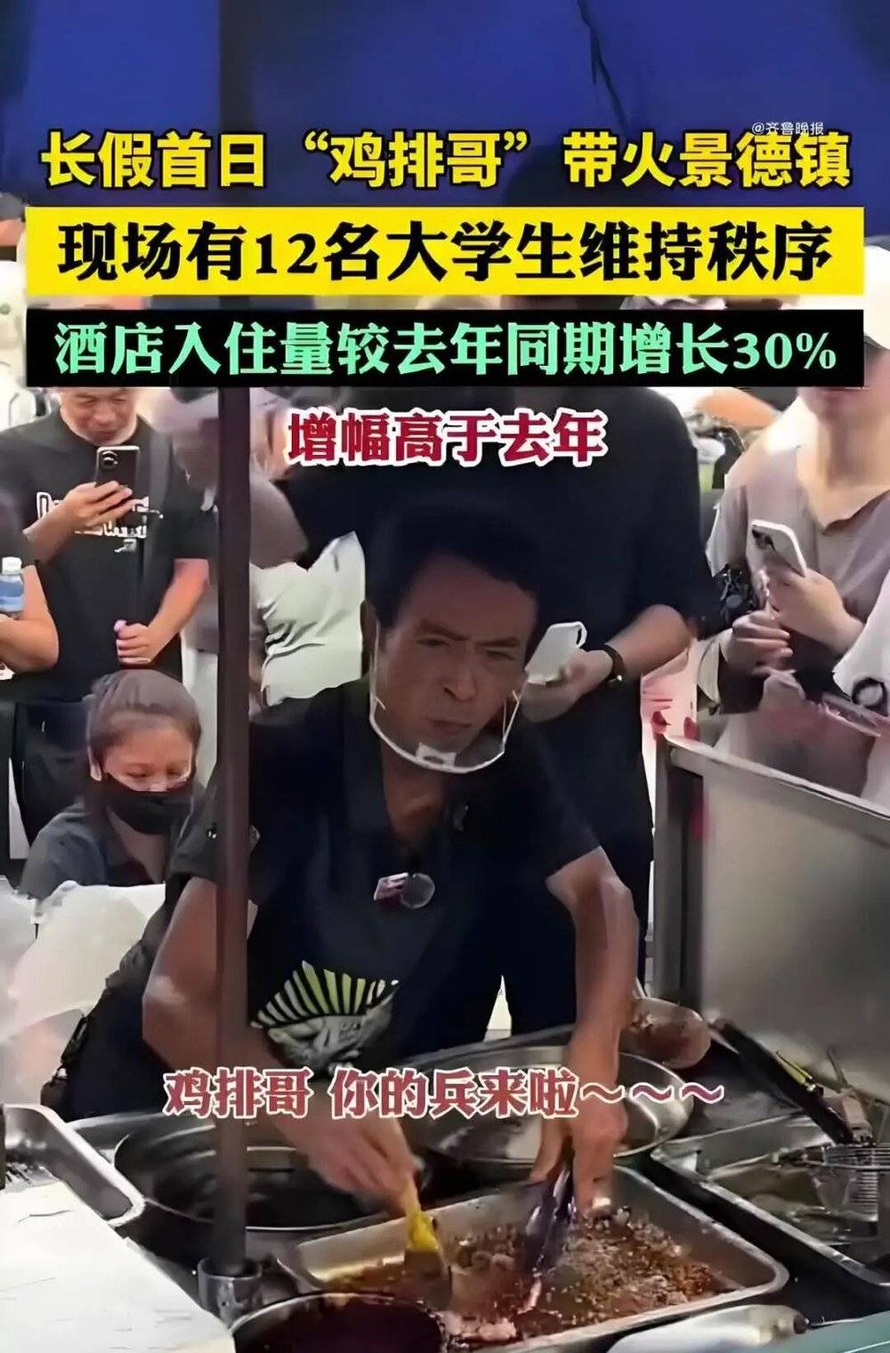 而在江西景德镇,鸡排哥还在那口小摊上,穿着那件被油烟染成深褐色的T恤,一边炸鸡排,一边笑着和客人聊天。他没logo、没装修、没系统,甚至连个像样的灯牌都没有。但他的摊子前,天天排队。