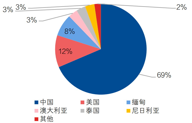 缅甸为全球第四大稀土产地,且其稀土产区毗邻中国云南等地稀土产区,拥有较多的离子矿(中重稀土),是除中国外全球重要的中重稀土产区。