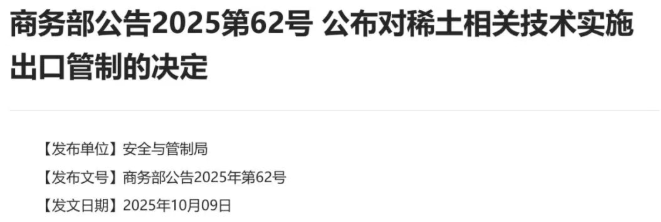 2025年10月9日最新出台的出口管制政策成为稀土板块的重要催化剂。