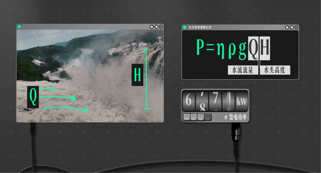 其中的Q和H,分别表示水流的流量和水头高度。这两个条件是决定水力发电潜力的关键因素。