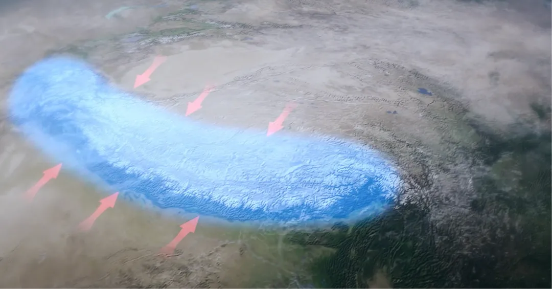 之所以能有如此巨大的流量,还要感谢印度洋的暖湿气流。每年夏季,印度洋吹来大量水汽,但高高隆起的喜马拉雅山就像一堵高墙,将大部分水汽阻挡下来。