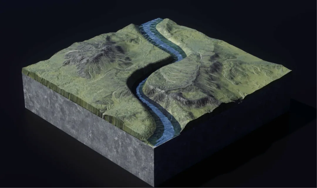 多年水流冲刷造成的强烈向下侵蚀,生生切穿了上升的山体。
