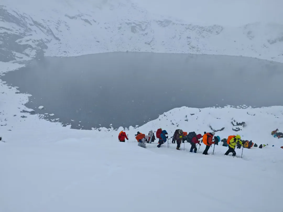 大雪来袭那天,恰好是海子所带商业徒步团的行程第三日,团队当时正在前往海拔约4500米的汤湘营地。