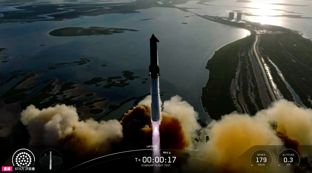 话不多说,让我们一起来回顾此次发射的全部过程。首先,位于星舰下方的超重型火箭助推器点燃了全部发动机,开始向太空爬升。