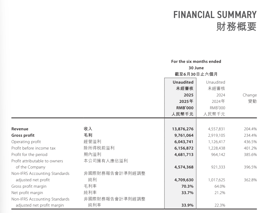 以泡泡玛特为例,2025年上半年,泡泡玛特毛利率为70.3%,同比提升6.3个百分点。在所谓消费降级、大环境不透明的当下,泡泡玛特反而实现了逆势增长,这背后的一大关键,就是摆脱了过去对Molly这一单一爆款的依赖,而是有了一系列爆款IP矩阵。