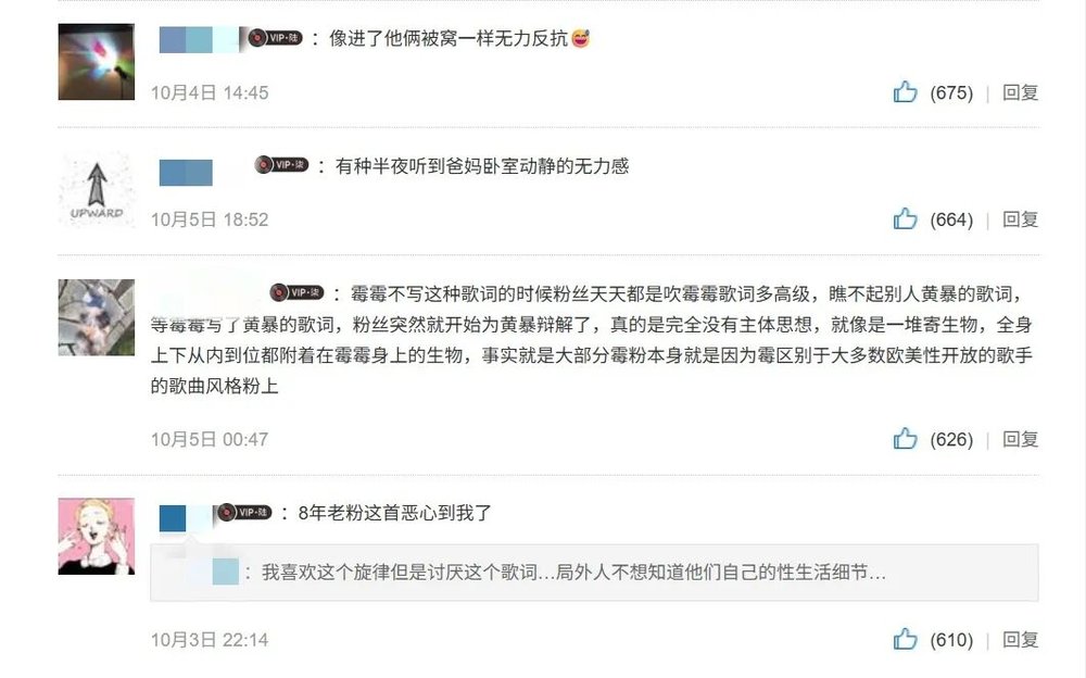 其次是歌词的争议。像是《Wi$h Li$t》中“和你生几个孩子,让整条街都延续你的眉眼”的直白表达,被部分歌迷解读为向传统家庭角色的回归,引发了关于女性主义立场的焦虑,甚至被指“娇妻化”;而《Wood》中对男友私密生活过于具体的描绘,则让不少老粉感到尴尬,借用一句评论:“有种半夜听到爸妈卧室动静的无力感。”