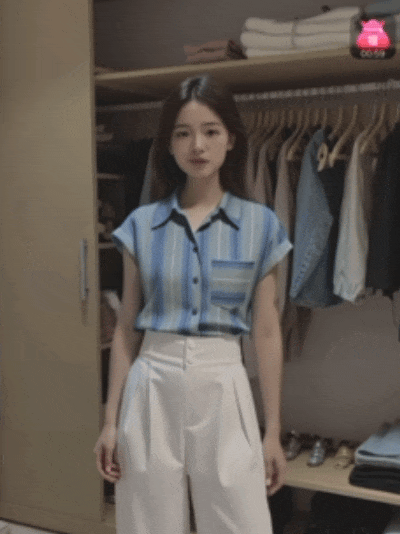 “她们”会像真人主播一样上身试穿衣物,转身给观众展示侧面、背面效果,讲品时经常自然地扯扯袖口、整理下摆,甚至做出手插裤兜、撩头发等无意义但很有“活人味”的小动作。
