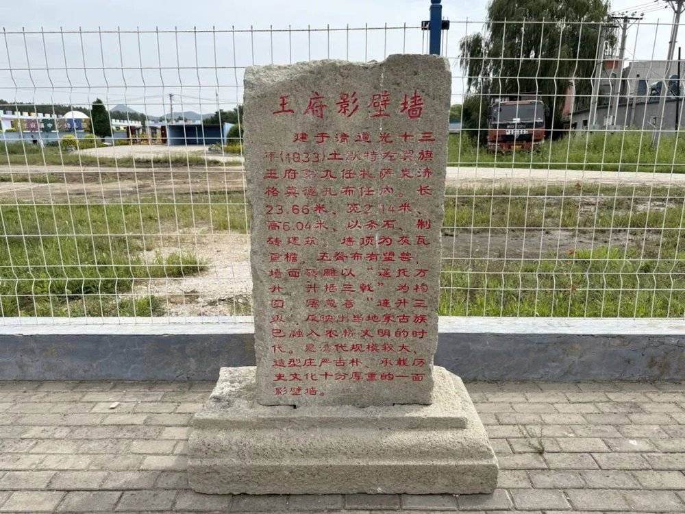 我们先去了一座王府,这个地方在今天的阜蒙县王府镇王府村,如今只留下一块清代影壁。整个建筑物,据说在解放战争时期,被国民党方面烧毁了,最近几年开始重建。
