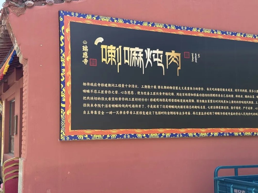 我们来瑞应寺的目的有二,除了看古建筑,就是吃。阜新有一道名吃,叫喇嘛炖肉。而瑞应寺正是阜新的藏传佛教中心,同时它的斋堂也对外开放,这可以说得上是最正宗的喇嘛炖肉了。