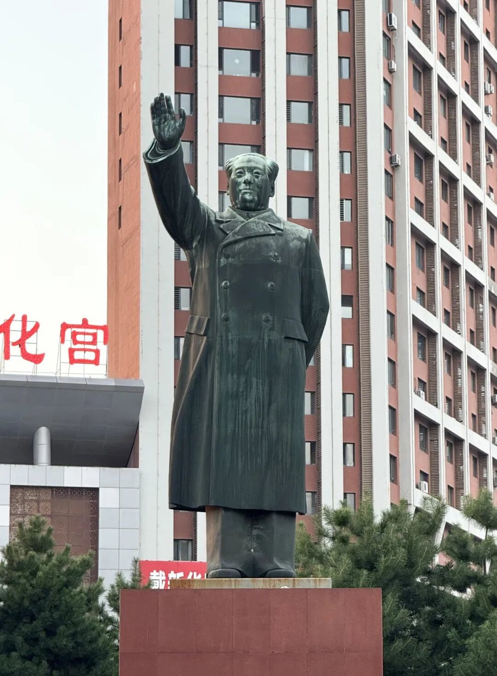 这些环岛,其中最著名的是解放广场,这里有一尊毛主席铜塑像。按司机的说法,这里以前是日本人的炮楼,但按当地史志的资料记载,这里在1937年的时候是日本人建的中央广场,解放后改为了解放广场。