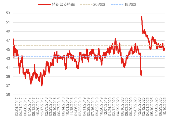 其二是政治阈值,重点关注特朗普周频支持率数据,以及其二阶导数。