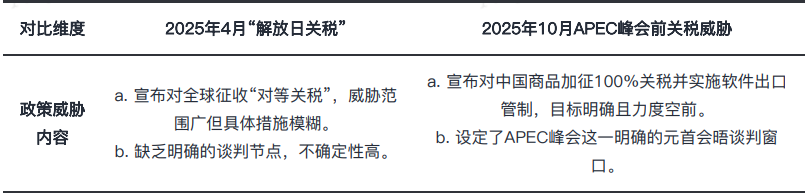 2025年以来,市场经历了两次由特朗普政府关税威胁主导的典型“TACO交易”事件,分别是4月的“解放日关税”与10月APEC峰会前的关税威胁。