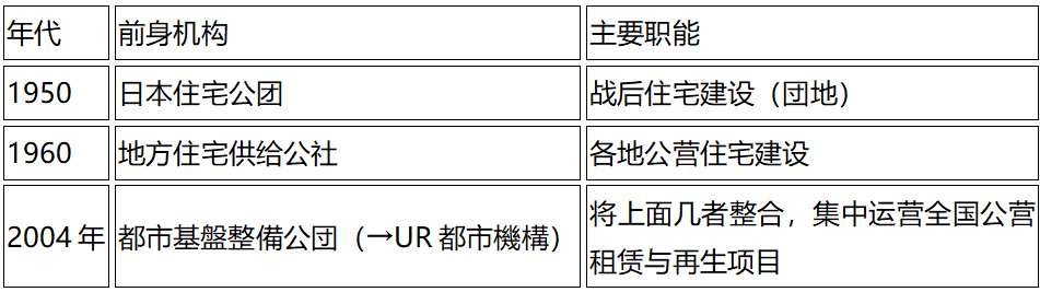 从“拿地”这个环节,UR就无人能敌。它一边做老破小的翻新,一边还负责着新地块的开发。UR创立于2004年,由“都市基盘整備公団”改组而来。它直接合法继承了两拨房子: