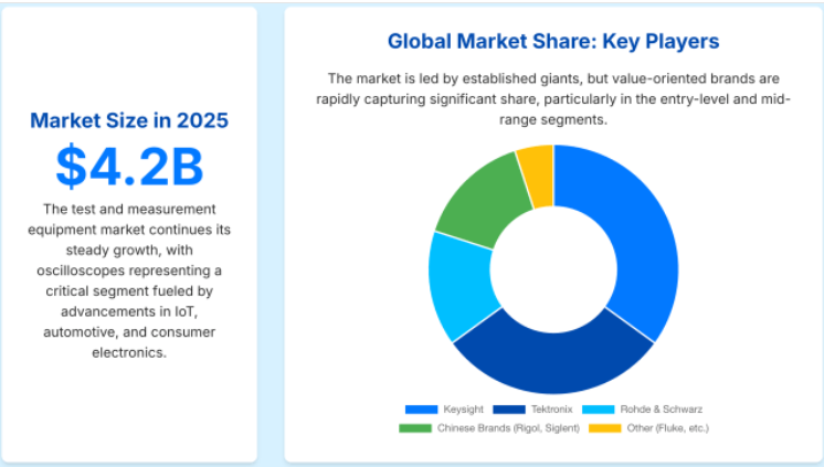 2025年全球示波器市场规模预计在20—35亿美元之间,未来年均增速超过8%。