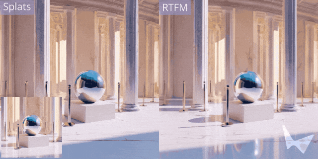 与许多世界模型不同,RTFM能够学习并渲染出极其复杂和真实的视觉效果。无论是光滑大理石地面的倒影、物体在阳光下的阴影,还是透过玻璃看到的景象,RTFM都能准确地模拟。