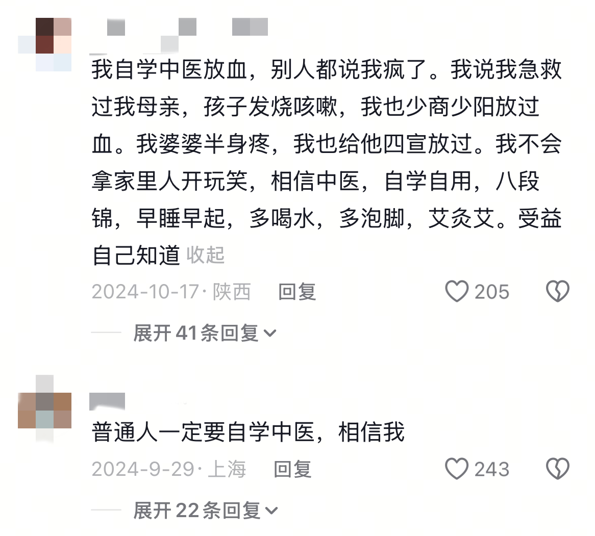 另一方面,中医爱好者没有排除“自然康复”或者“其他干预起效”的可能性。尤其是许多自限性疾病可以凭借自身免疫力痊愈,中药的具体参与度就变得暧昧起来。