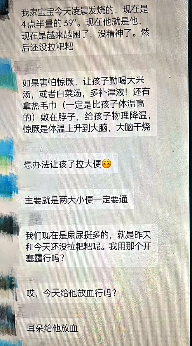 有的宝妈不带高烧的孩子去医院,坚持在家葱白姜片煮水,做推拿、热敷、艾灸和放血,甚至还有神人支招:把自己的肚脐和宝宝的肚脐贴在一起即可退烧。