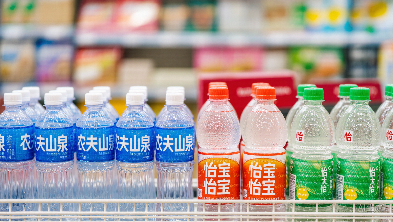超市货架上,规格相似的农夫山泉矿泉水、怡宝纯净水并排陈列,它们就像是双胞胎:标签上的零售价整齐划一,同样拧盖即饮,口感差异甚微,在消费者眼里几乎是“可替代选项”。