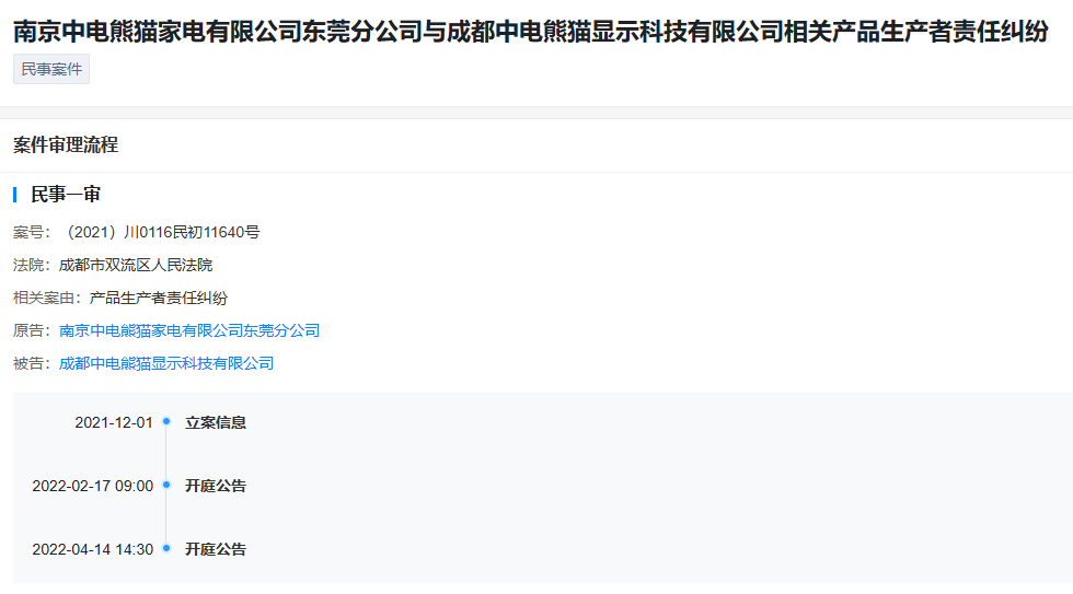 观察者网查阅公开信息获悉,熊猫家电与成都熊猫之间在2021年12月-2022年4月的确曾因“产品生产者责任纠纷”发生诉讼关系,但最终成都市双流区人民法院判处的赔偿金额是否为600余万元并未查实。可以肯定的是,根据北京市朝阳区人民法院的三次判决文书,熊猫家电并未将这笔补偿款如约转交给乐视。