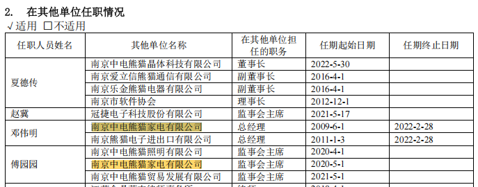 除关联交易之外,两家企业高管也经常互相兼任。如上市公司非执行董事邓伟明(2010年-2024年),同期还担任熊猫家电总经理和熊猫集团副总经理等要职;再如上市公司非职工监事傅园园(2020年至今),同期担任熊猫家电监事会主席和股东方中电熊猫审计部主任等要职,足见两家兄弟公司之间过从甚密。