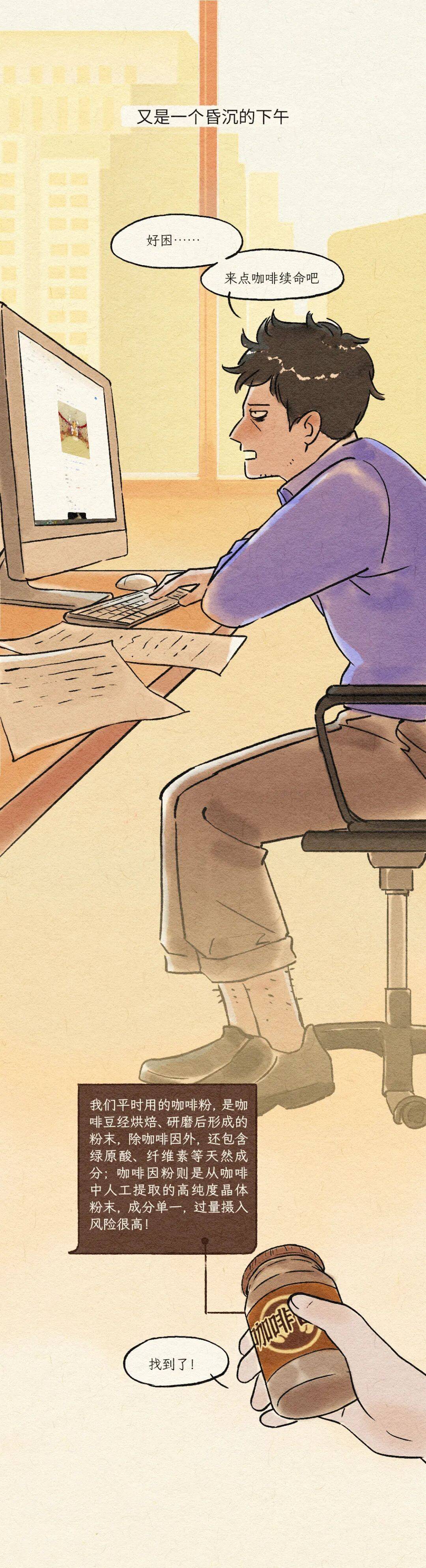 漫画中的情节是为了科普咖啡因相关知识而进行的节目处理,在我国,咖啡因属于国家特殊管制的第二类精神药物,其生产、经营、使用和流通均受到严格监管。普通个人无法直接购买咖啡因原料药或高浓度制剂,但可通过合法渠道获取含咖啡因的药品或食品。