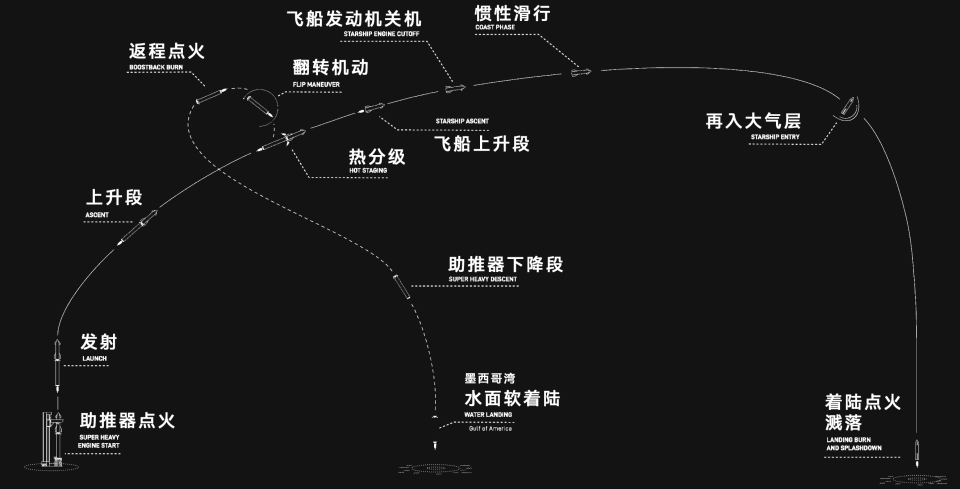 星舰亚轨道飞行主要阶段示意图图源:SpaceX