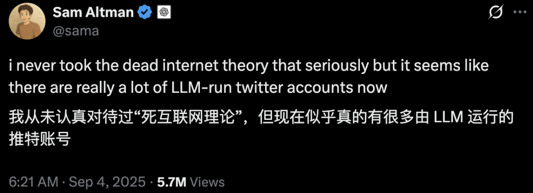 这些AI生成内容的泛滥,让Altman再度担心“死亡互联网”理论的影响。