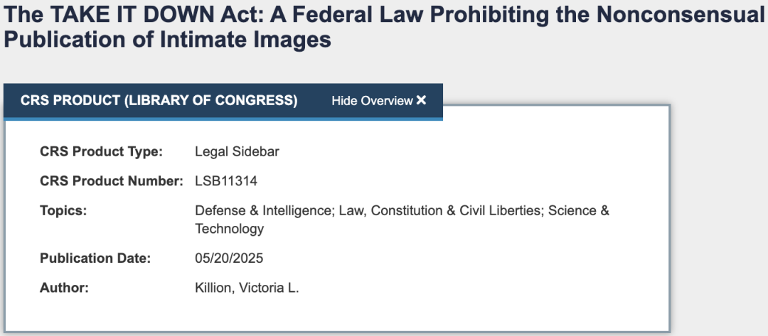 比如,美国政府在2025年5月19日正式出台《TAKE IT DOWN 法案》,将故意发布或威胁发布非同意的亲密图像(包括 AI 生成的深度伪造)定为犯罪行为。