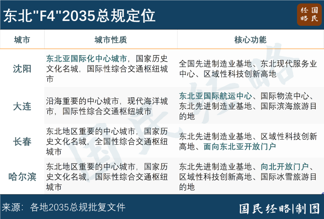 在国家批复的2035总体规划中,东北F4,谁的定位最高?